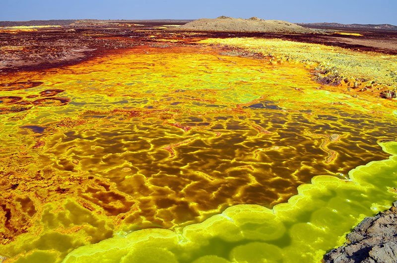 Etiyopya’nın Afar bölgesinde bulunan Danakil Çöküntüsü dünyanın en sıcak yerlerinden biri. Hava sıcaklığı çok yüksek değerlere çıktığından “dünyadaki cehennem” olarak anılıyor. Rüzgarı bile derinizi yakabiliyor. Jeolojik açıdan da çok aktif olan Danakil Çöküntüsü neredeyse hiç yağış almadığı için kuru bir iklime sahiptir.