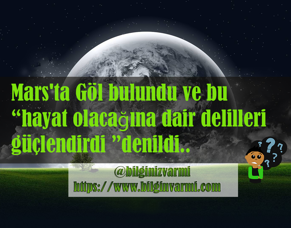 Mars’ta Göl Bulundu: Dünyadan 55 milyon km uzakta bulunan Mars Gezegeni’nde geniş çaplı bir göl bulundu. Daha önce yapılan araştırmalarda gezegende su kütleleri olduğuna dair ispatlar bulunmuştu. Yalnız bu seferkinin kalıntı değil 20 kilometrelik bir alanda yayılan göl olduğu aktarıldı. Bu gelişmelerden sonra bilim adamları gezegende hayat olmasına dair beklentilerin fazlalaştığını belirtti ve daha fazla su bulunması ihtimalinin de yükseldiğini söylediler.
