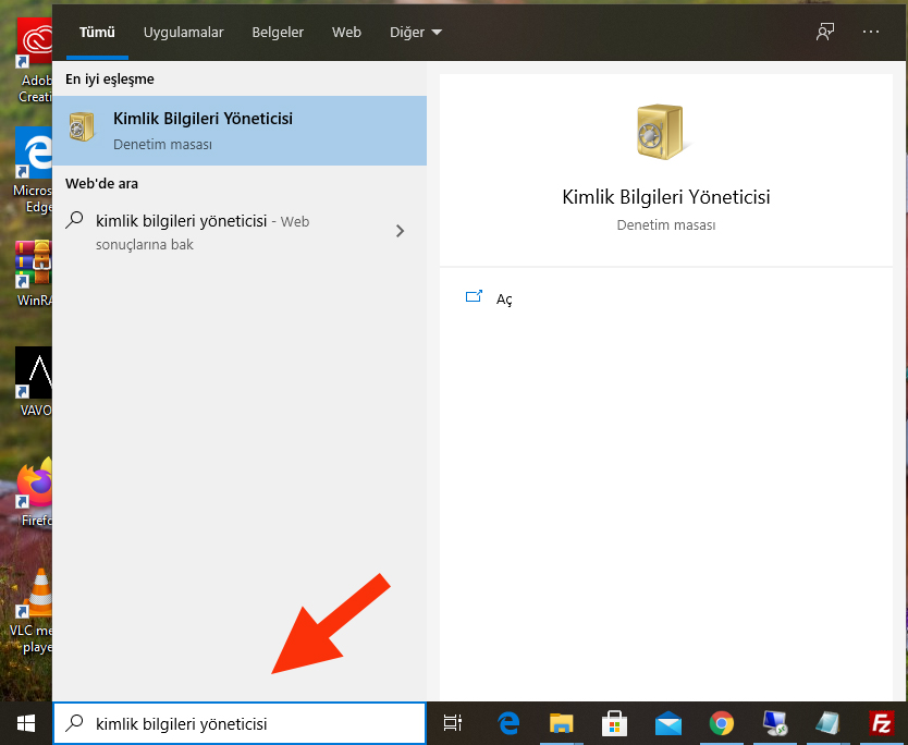 Aşağıdaki gibi bir ekran açılacak. Burada iki bölüm var. Birisi Web Kimlik Bilgileri, diğeriyse Windows Kimlik Bilgileri.